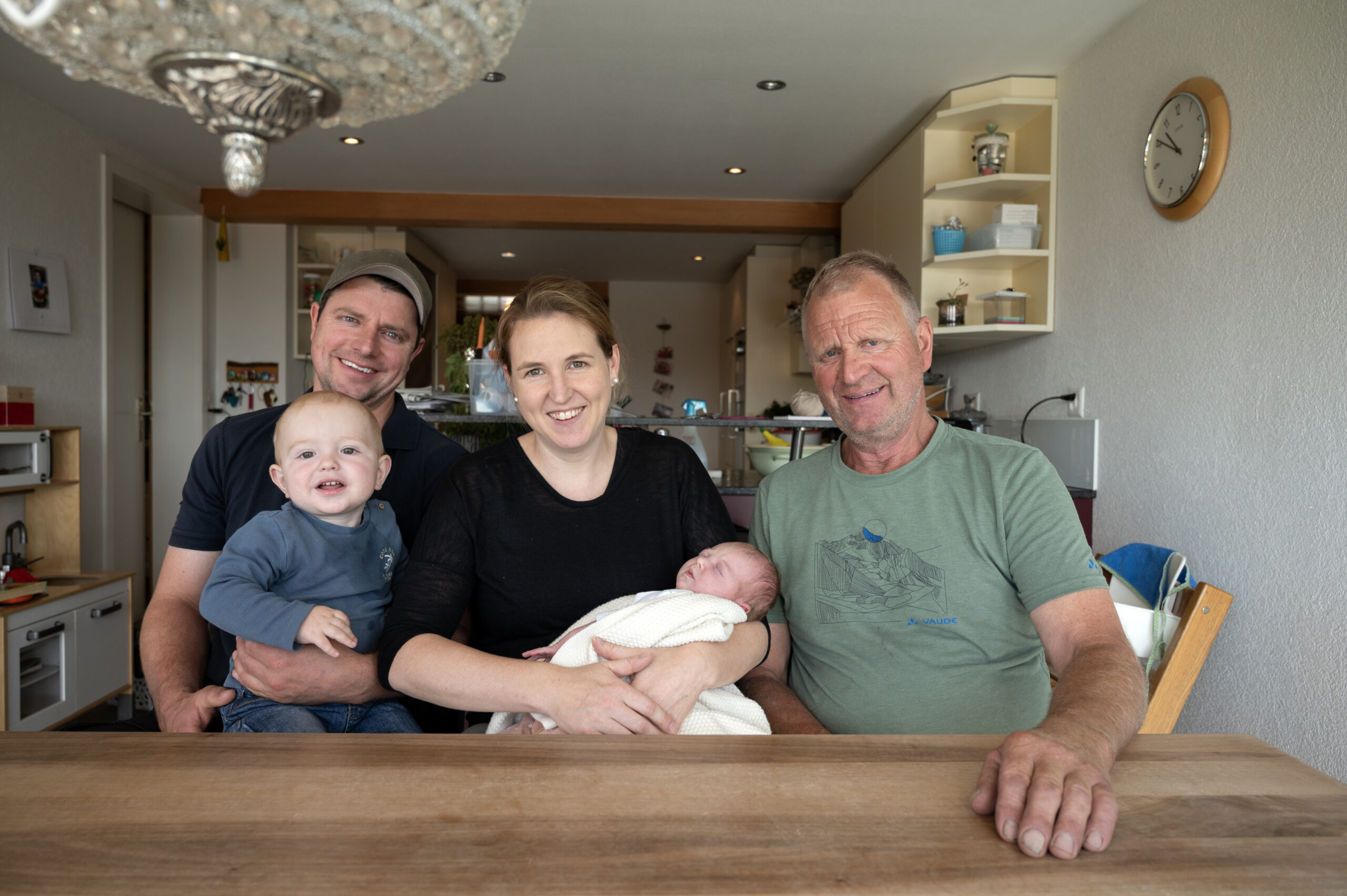 Eine gewisse Arbeitsteilung hat sich über die Jahre trotzdem herausgebildet: "Michael ist der Manager", sagt Fritz, als die beiden später bei Kaffee und Schokoladenkuchen am Küchentisch sitzen. Er kümmere sich um die ganze administrative Arbeit. "Früher war das aber ganz anders", widerspricht Michael. "Der Übergang war nah dis nah." Neben seiner Arbeit auf dem Hof arbeitet Michael noch Teilzeit als Treuhänder. Zudem schaut er gemeinsam mit seiner Frau Christine zu den Kindern. Und das gibt viel zu tun, denn vor wenigen Wochen hat Elio ein Schwesterchen erhalten: Noemi. Umso besser, dass die Grosseltern im selben Haus wohnen.