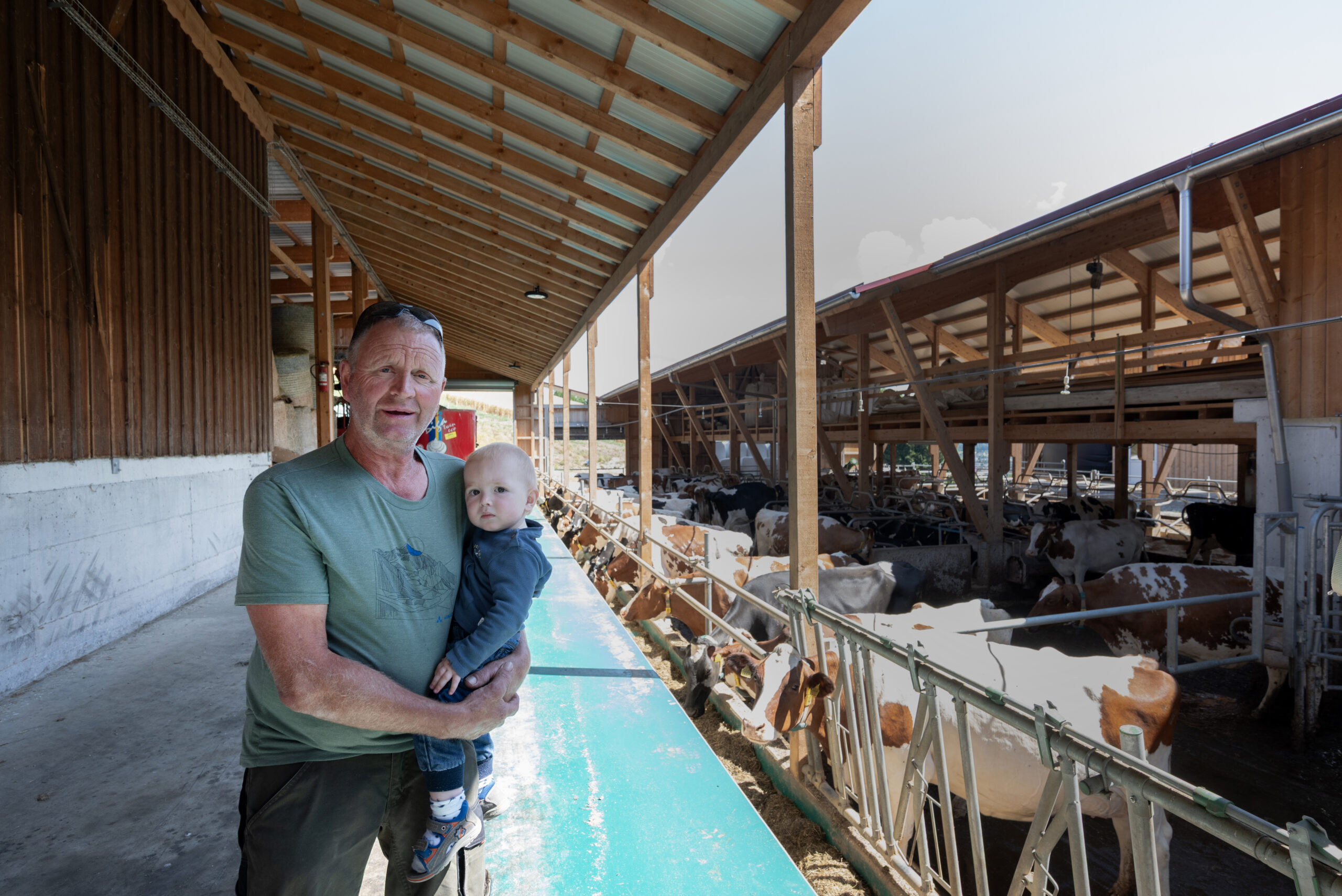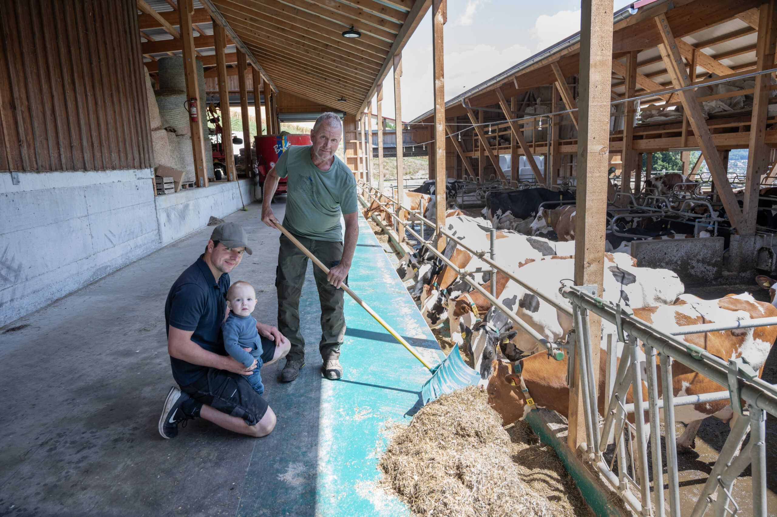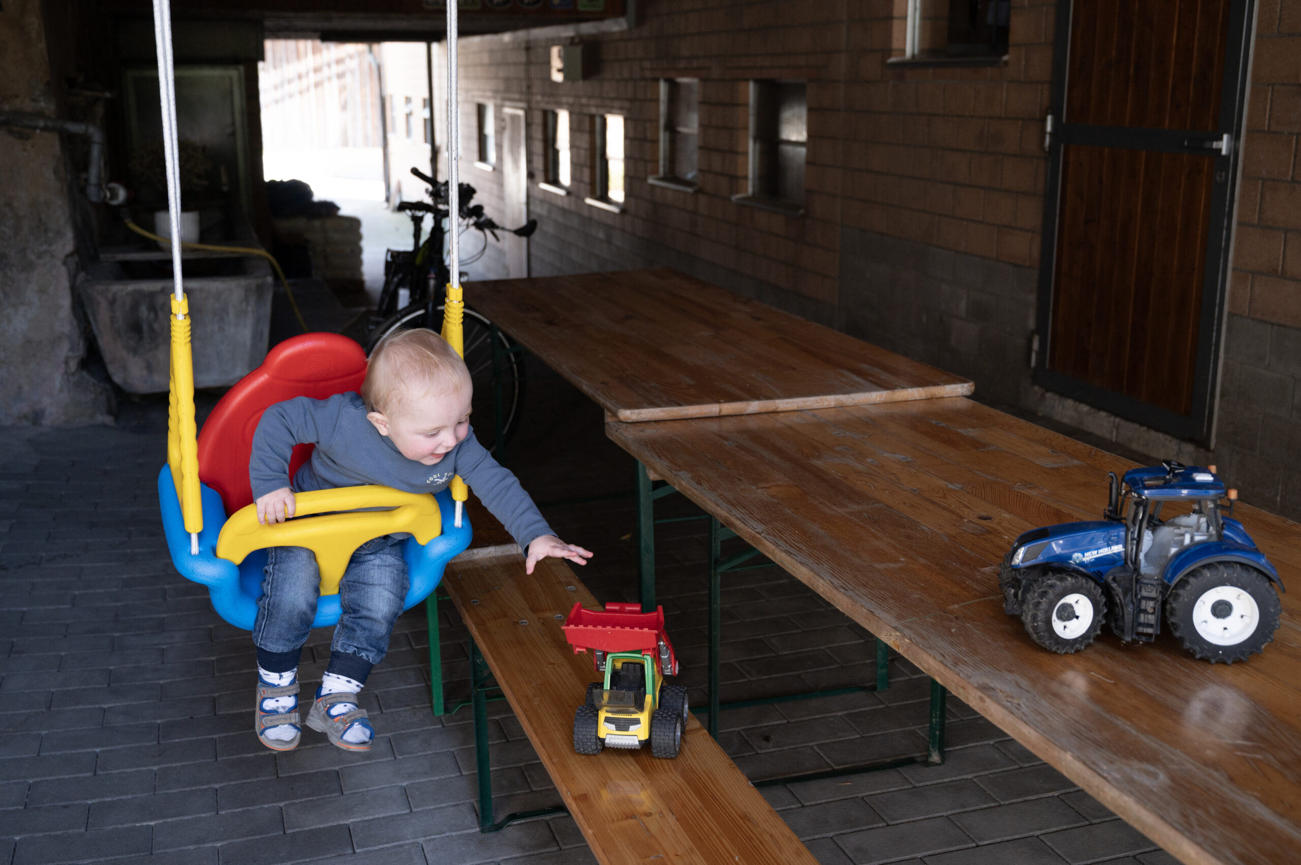 Nun, da Michael auf den Hof zurückgekehrt ist, konnten sie in die Zukunft des Familienbetriebs investieren. "Jetzt gehts nur noch vorwärts", sagt Fritz. Während die beiden am Küchentisch erzählen, kommt Michaels Frau Christine herein, mit Elio und der kleinen Noemi in den Armen. Elio klettert sogleich auf Michaels Schoss und pflügt mit einem Plastiktraktor über den Tisch. "Es ist schön, dass die Kinder hier aufwachsen können", sagt Michael. Mit den Tieren und der Natur – so wie er selbst.