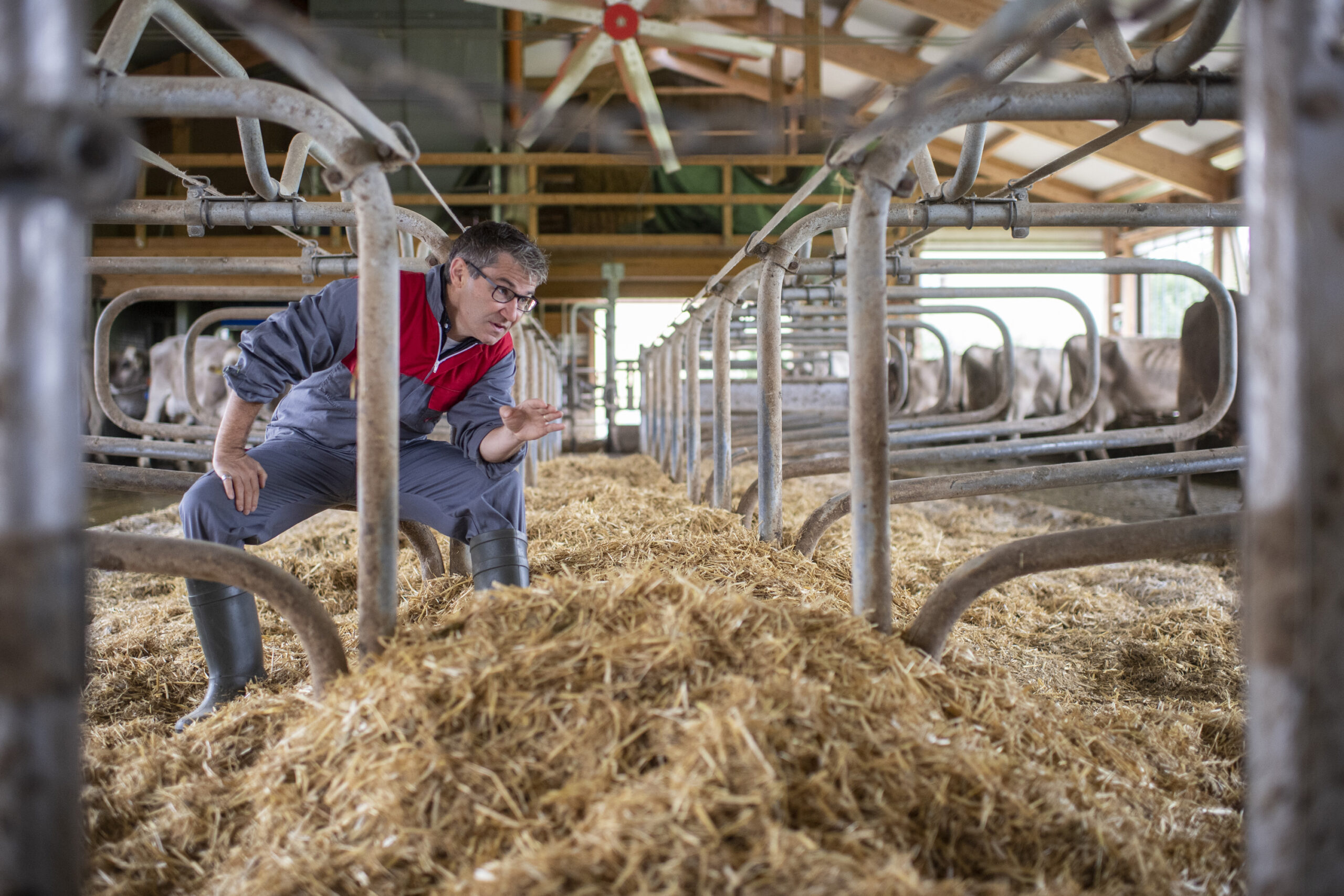 Für das Wohl der Tiere ist im Stall des Strickhofs vorbildlich gesorgt: Ein Mistroboter summt durch die Gänge und reinigt sie – er schiebt den Mist durch den Spaltenboden ins Gülleloch. Die Liegeboxen sind dick eingestreut. Das Fell der Tiere glänzt sauber. "Bei guter Pflege und Hygiene sind sie gesünder, davon profitieren alle", sagt Anita zwischen lauten Muh-Rufen. "Wer seine Tiere gut pflegt, hat weniger Tierarztkosten, mehr Milchleistung – und mehr Freude an der Arbeit." Die allermeisten Landwirte sehen das ebenso. Tierschutzverstössen begegnet Anita selten: "Fast alle machen es gut", weiss sie aus Erfahrung.