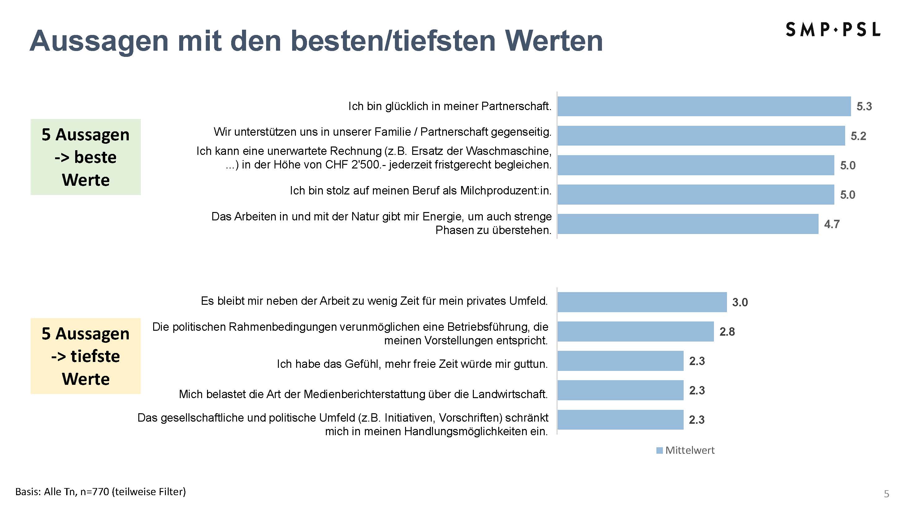 Damit wird deutlich: Die Lebensqualität in der Milchwirtschaft hängt stark vom Berufsstolz, der Motivation, der Innovationsbereitschaft und nicht zuletzt vom familiären Rückhalt ab.