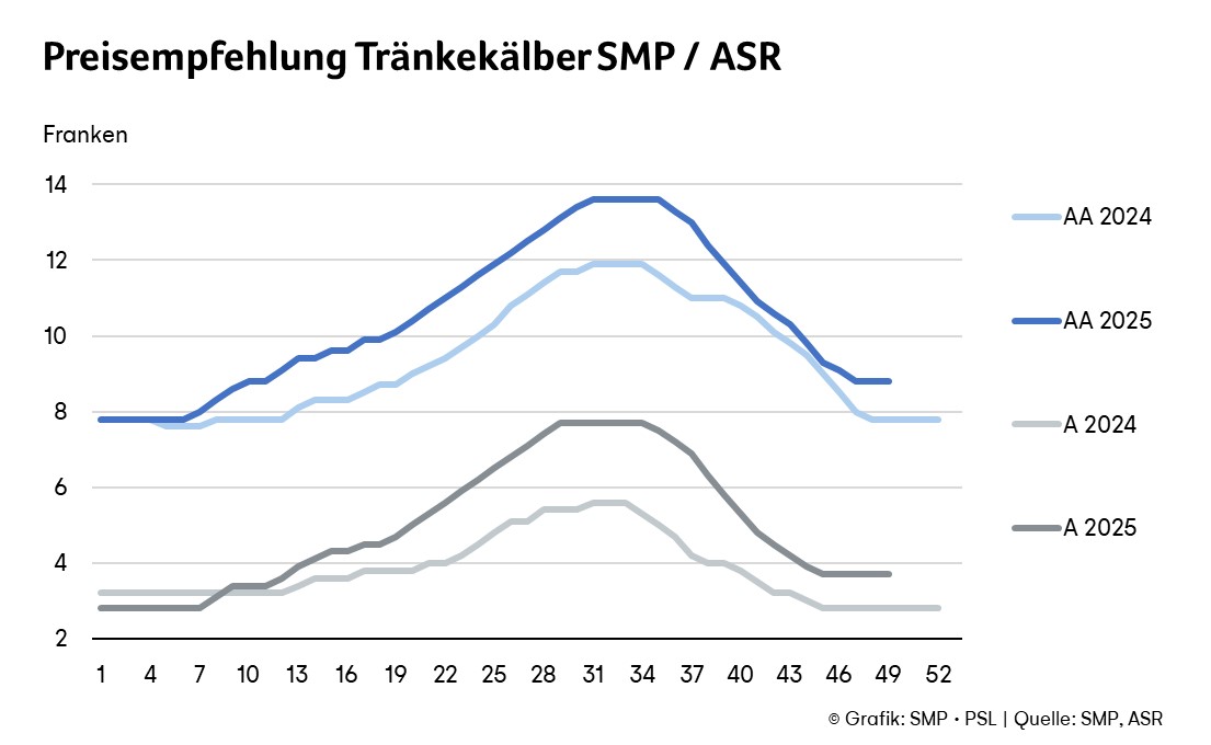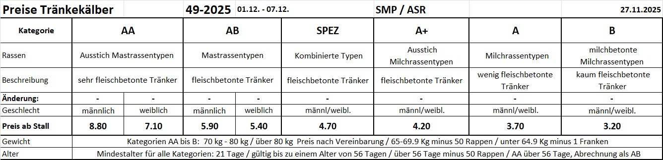 Seit 2020 publizieren die Geburtsbetriebe (Arbeitsgemeinschaft der Schweizer Rinderzüchter ASR und Schweizer Milchproduzenten SMP) eine Preisempfehlung für Tränkekälber. Die Milchproduzenten sollen eine möglichst genaue Angabe erhalten, welcher Preis für ein Tränkekalb erzielt werden kann.