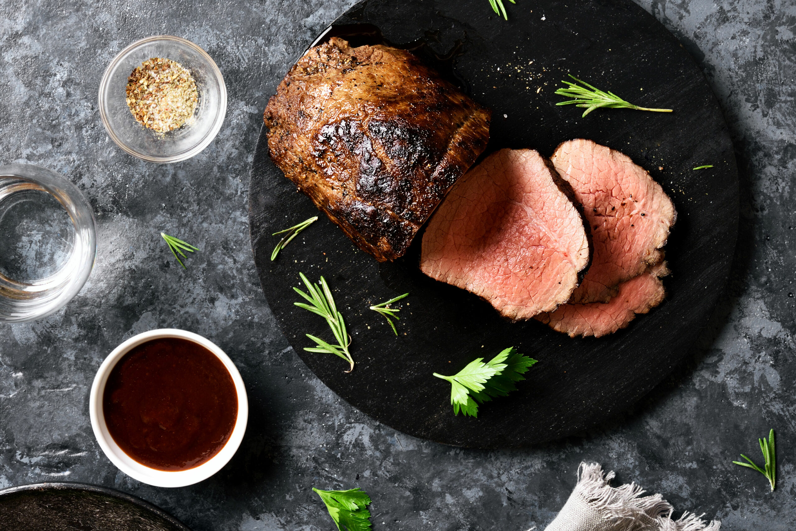 - Filet rundum in Bratbutter anbraten, auf ein mit Backpapier belegtes Blech legen und 20 Minuten im vorgeheizten Ofen fertig garen. Die Kerntemperatur des Fleisches soll 55-60°C betragen. 5-10 Minuten im geöffneten Ofen stehen lassen. In Tranchen schneiden und servieren.