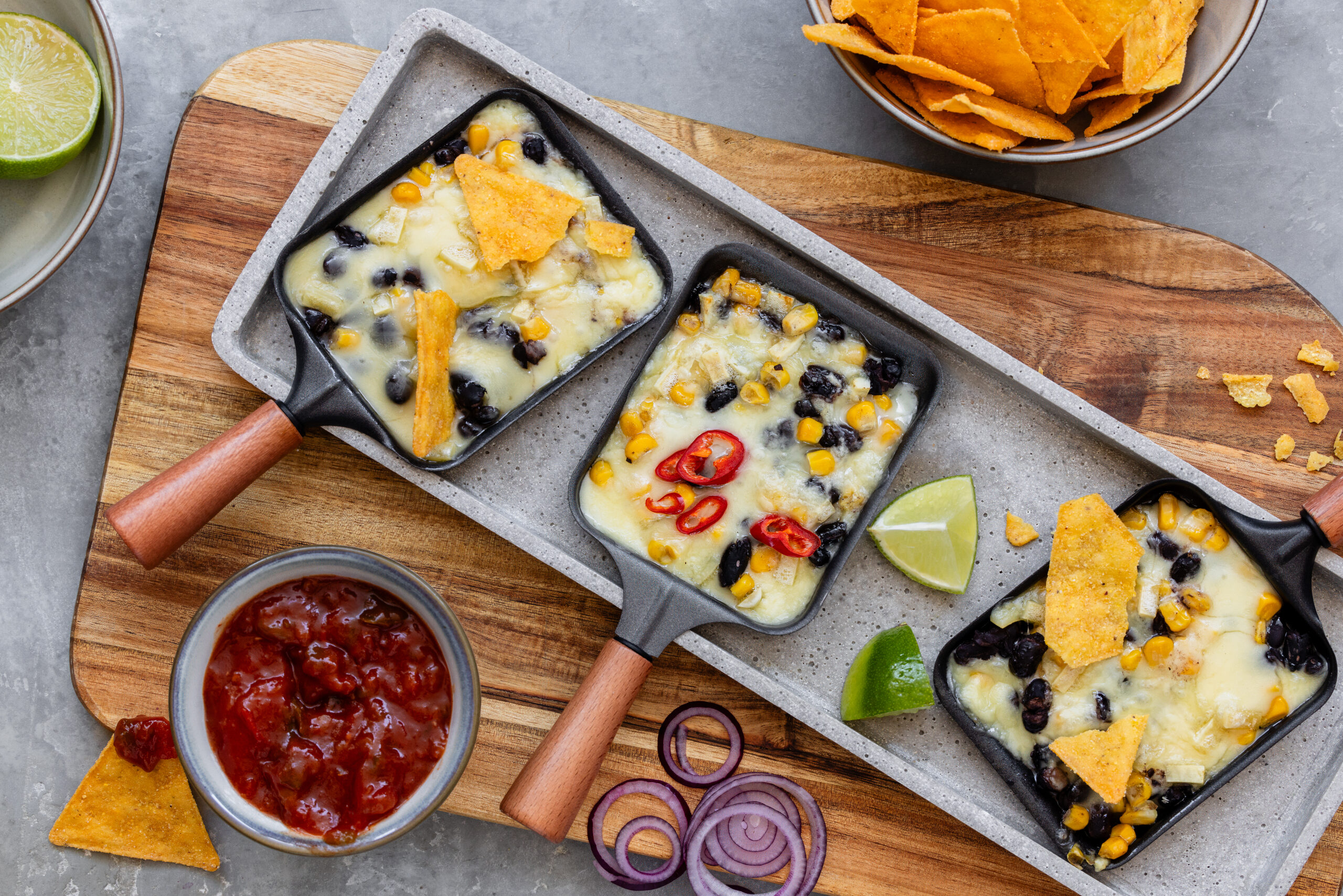 Eine pauschale Mengenangabe für die Beilagen zu machen, ist schwierig. Je nachdem, wie viel Verschiedenes angeboten wird. Du kannst grob mit insgesamt 150-200g p. P. weiterer Beilagen (neben Gschwellti und Käse) rechnen.