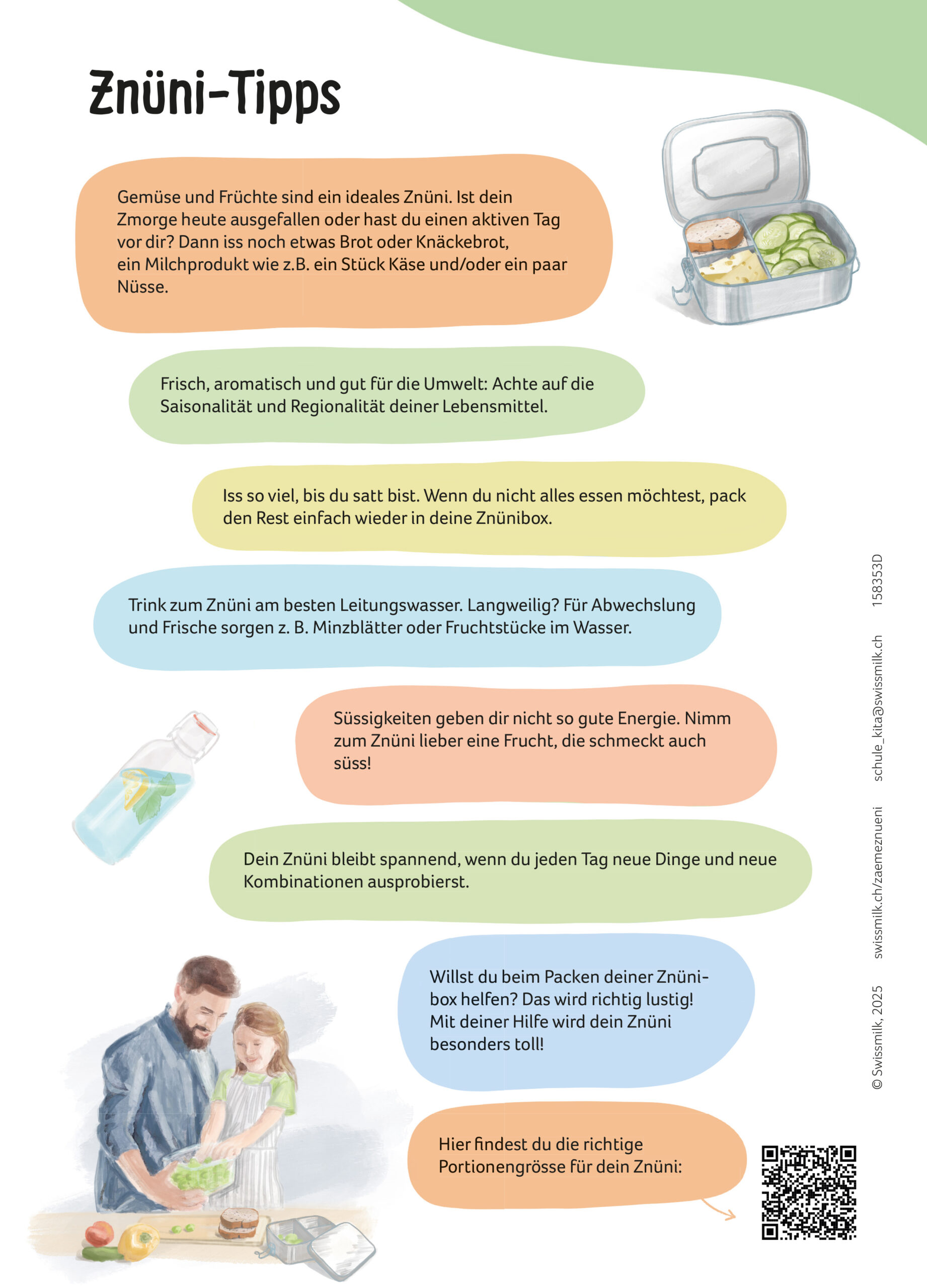 Das Merkblatt bietet wertvolle Tipps für ein ausgewogenes Znüni und kann den Eltern als hilfreicher Begleiter mitgegeben werden.