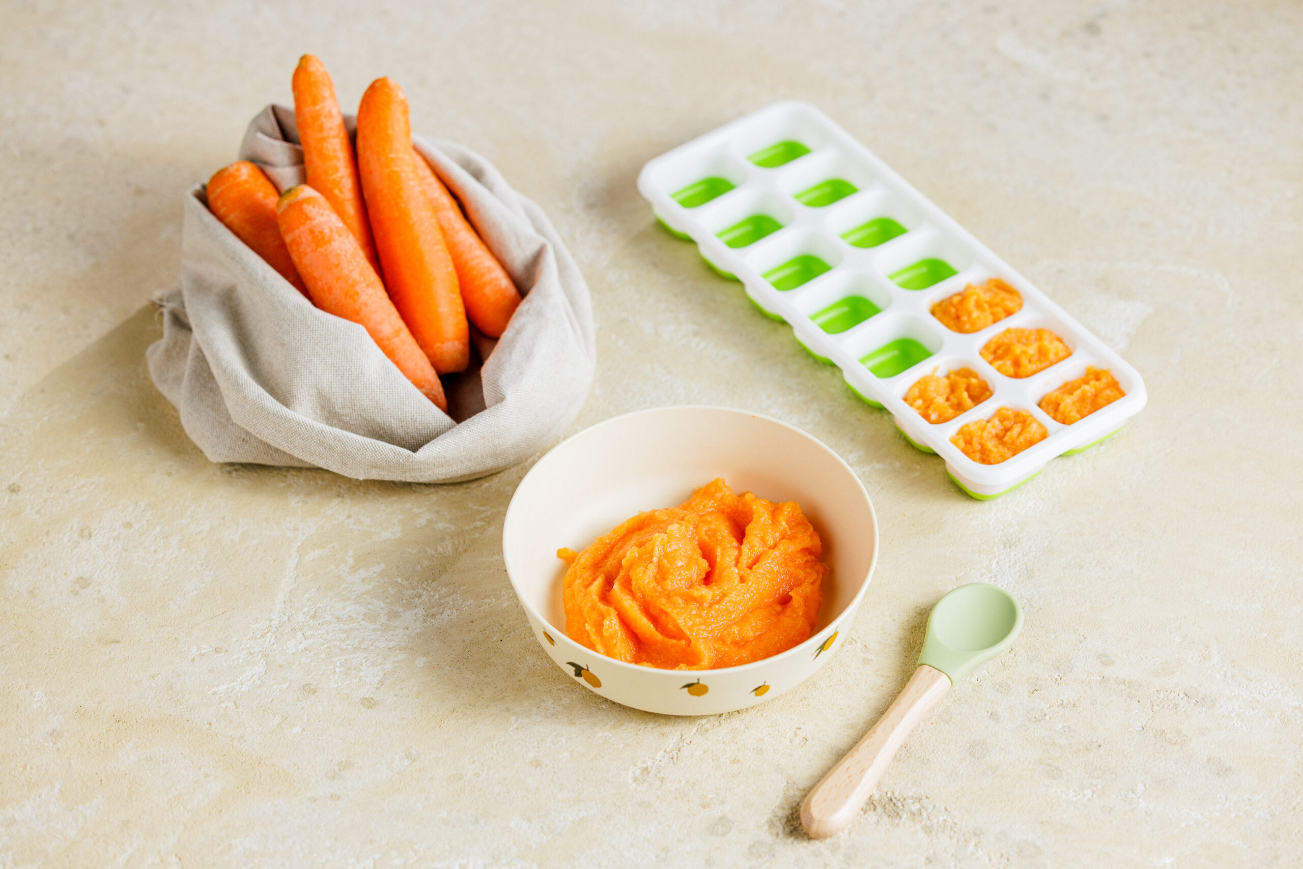 En Suisse, on commence généralement par une purée de légumes, souvent de carottes. Il est important d'introduire un seul aliment à la fois, afin de pouvoir détecter d'éventuelles intolérances ou allergies. Il est aussi important de donner le même aliment le lendemain et le surlendemain. On peut ensuite ajouter un nouvel aliment, comme la pomme de terre. Trois jours plus tard, vous pouvez ajouter de la viande aux carottes et aux pommes de terre.