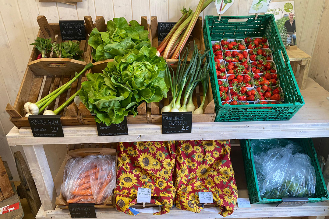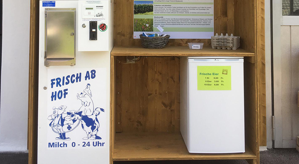 Envie d'acheter des aliments de saison, produits localement, dans les fermes de Frauenfeld et environs et de Thurgovie? Fruits, légumes, pain, confiture, lait et produits laitiers, viande: tous ces produits vous sont proposés en vente directe dans les magasins des fermes de Frauenfeld et environs et de Thurgovie. Découvrez sans attendre ce que ces fermes ont à vous offrir. Un distributeur de lait, un champ de fleurs à cueillir soi-même, des animaux… et la visite à la ferme devient un but d'excursion pour toute la famille! Les gérants et gérantes des magasins à la ferme de la région de Frauenfeld et du canton de Thurgovie se réjouissent de votre visite!