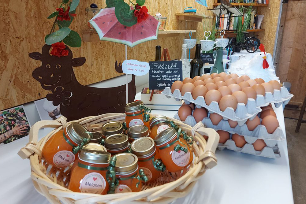 Envie d'acheter des aliments de saison, produits localement, dans les fermes de Zoug et environs? Fruits, légumes, pain, confiture, lait et produits laitiers, viande: tous ces produits vous sont proposés en vente directe dans les magasins des fermes de Zoug et environs. Découvrez sans attendre ce que ces fermes ont à vous offrir. Un distributeur de lait, un champ de fleurs à cueillir soi-même, des animaux… et la visite à la ferme devient un but d'excursion pour toute la famille! Les gérants et gérantes des magasins à la ferme de la région de Zoug se réjouissent de votre visite!