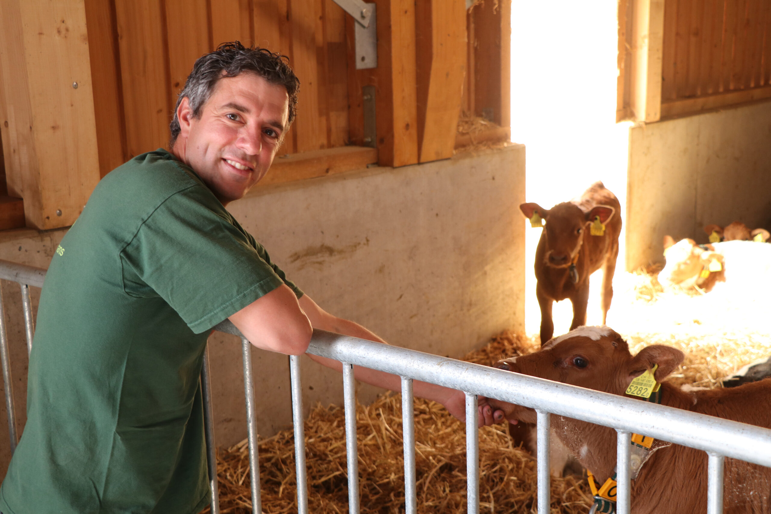 Chaque jour, les 130 vaches du Grundhof fournissent environ 4000 litres de lait. Emmi vient chercher le lait cru tous les deux jours. Une petite partie de la production est transformée en yogourt et vendue directement dans l'échoppe de la ferme. Par ailleurs, Sabrina Schlegel et Yannick Decrausaz sont les seuls en Suisse à élever des porcs ibériques. Au Grundhof, on accorde une grande importance au développement durable: environ un quart des surfaces est destiné à la promotion de la biodiversité. Des petits tas de pierres, de branches et de sable ainsi que des hôtels à abeilles et des zones ouvertes offrent un refuge à une myriade d'insectes et d'autres animaux. De plus, des tapis en caoutchouc spéciaux dans l'étable et des compléments alimentaires contribuent à diminuer les émissions d'ammoniac et de méthane des vaches. Le toit de la ferme accueille 1300 mètres carrés de panneaux solaires, dont l'électricité est injectée dans le réseau. La ferme ouvre ses portes au public dans le cadre du projet Visites d'étables.