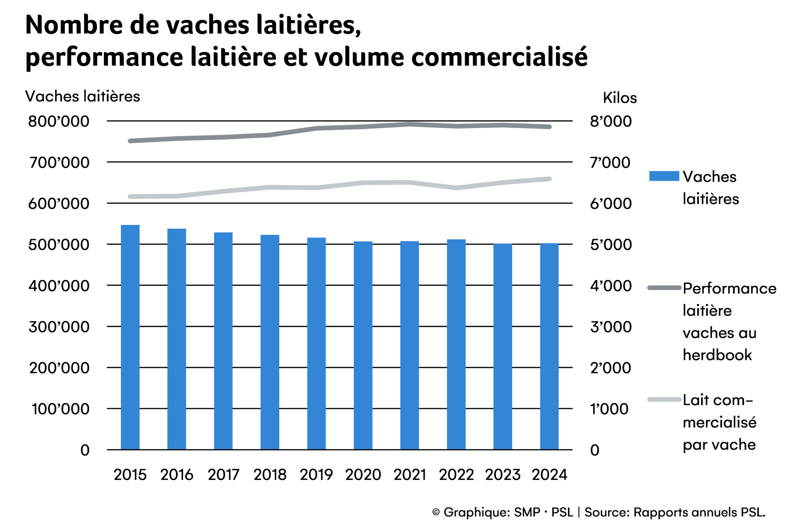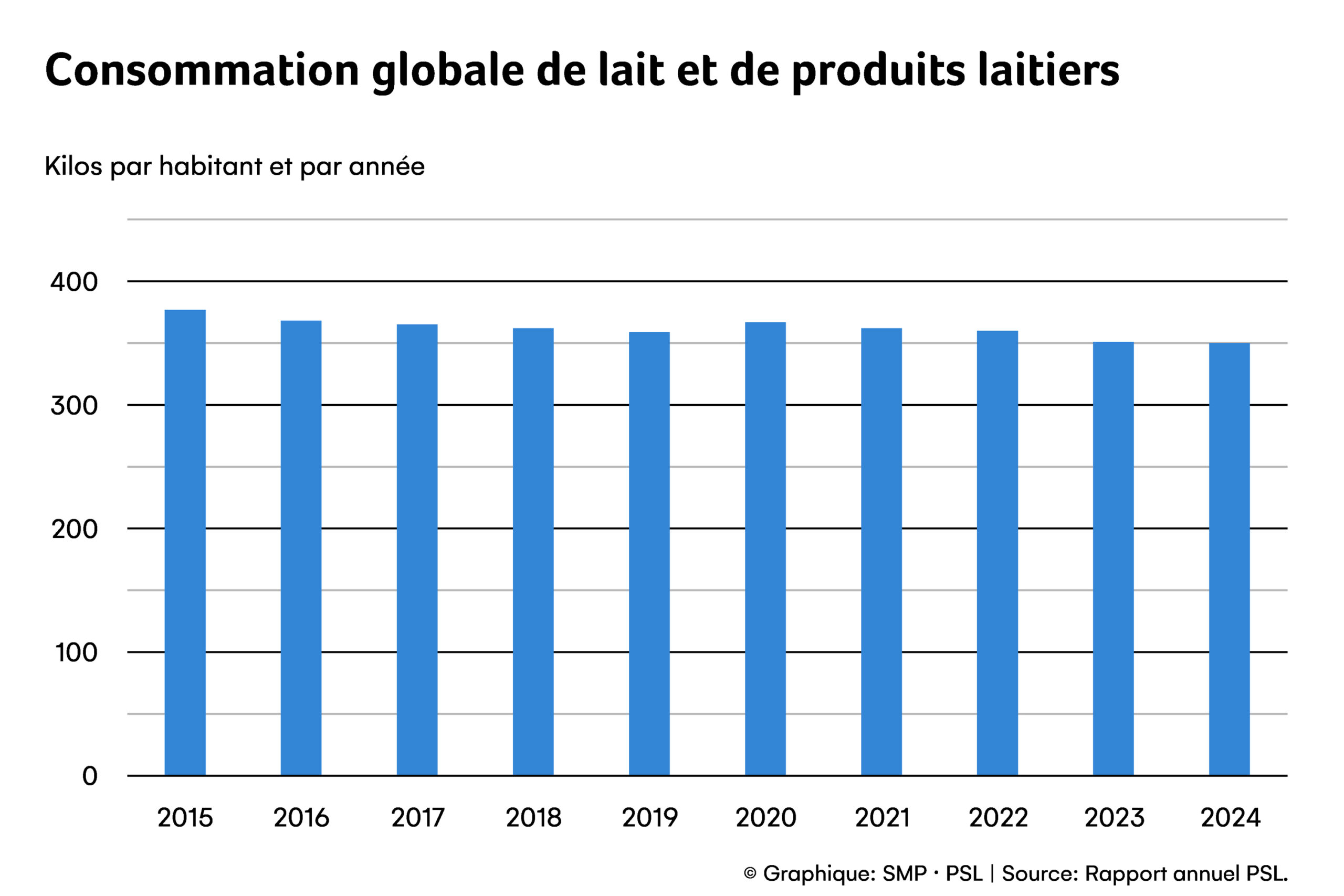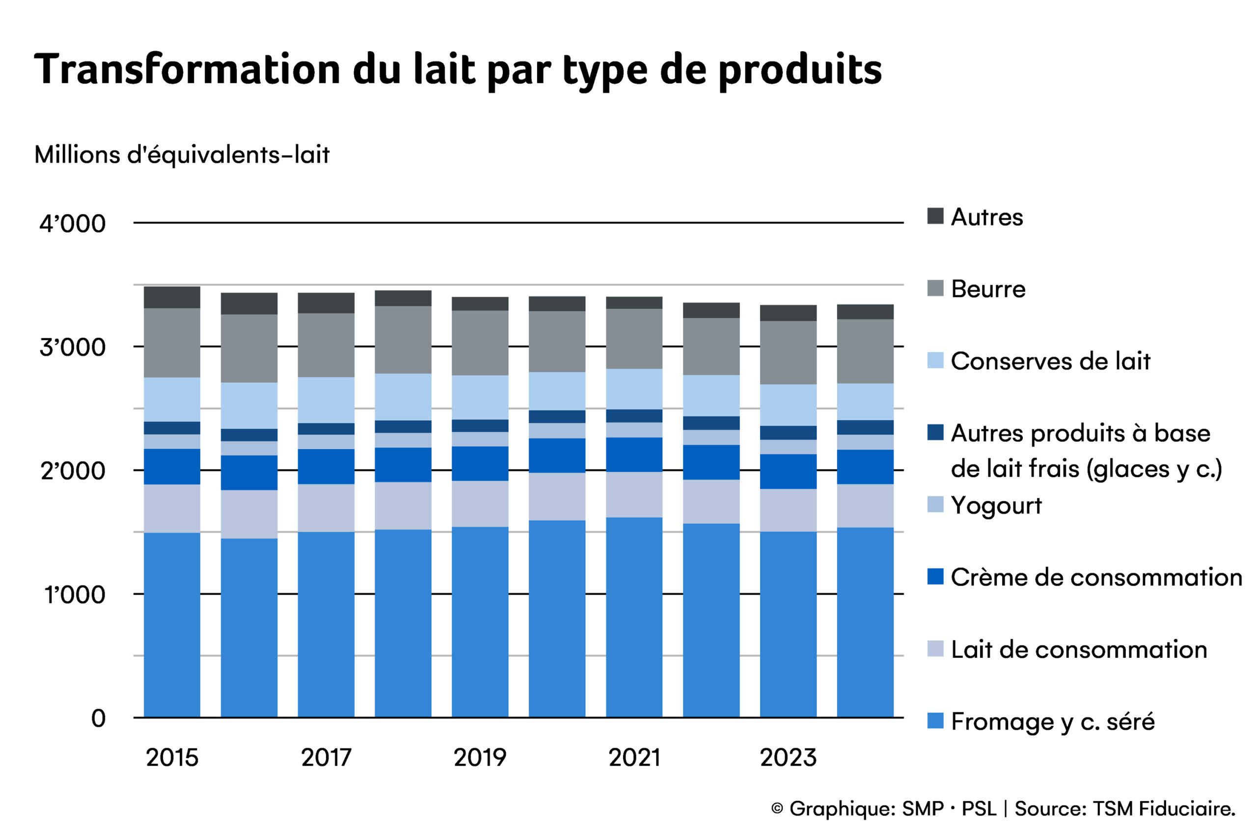 Les graphiques et illustrations suivants offrent une vue d'ensemble concrète de la situation actuelle et de l'évolution de la production, de la transformation et de la consommation de lait en Suisse.
