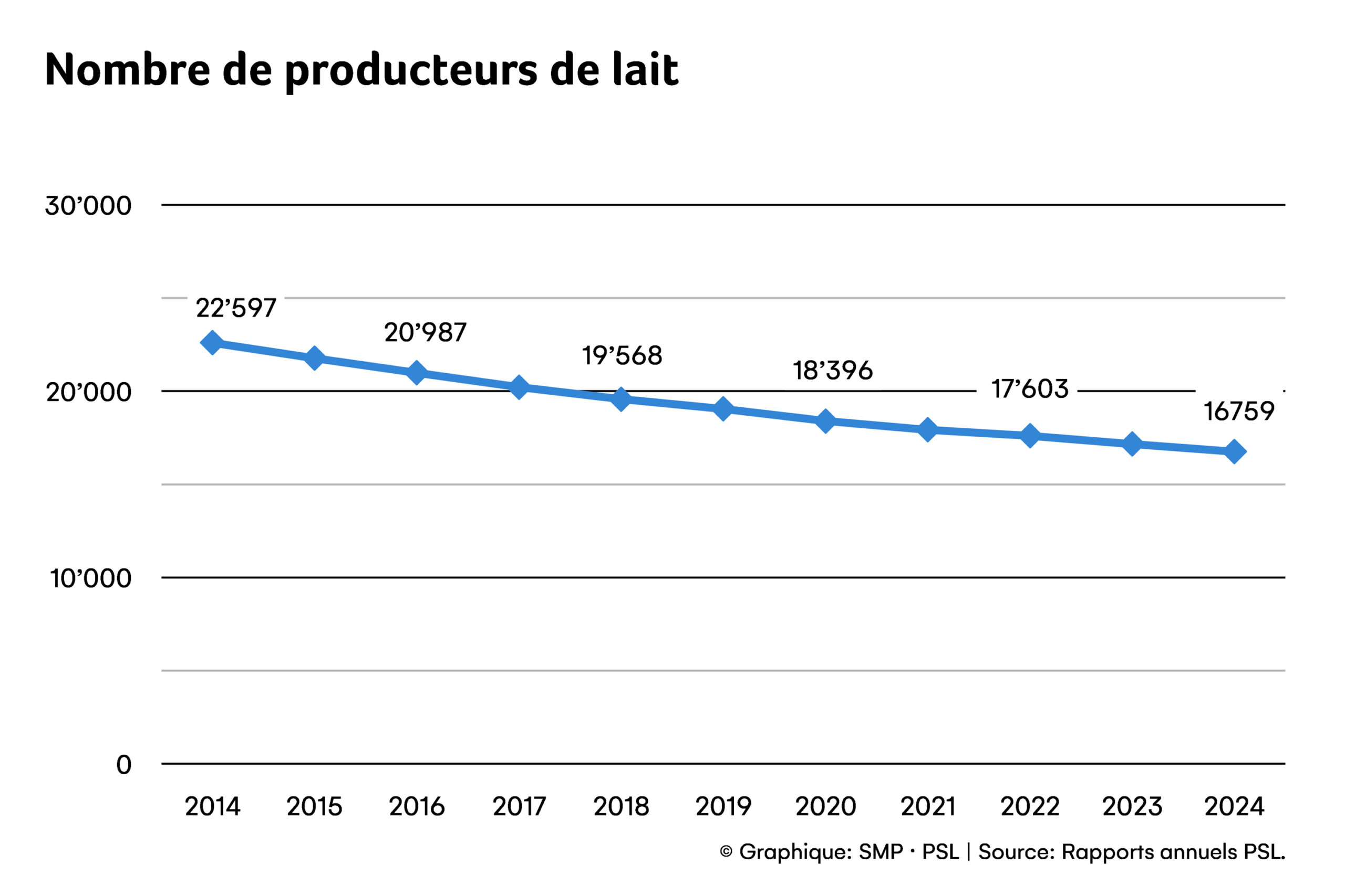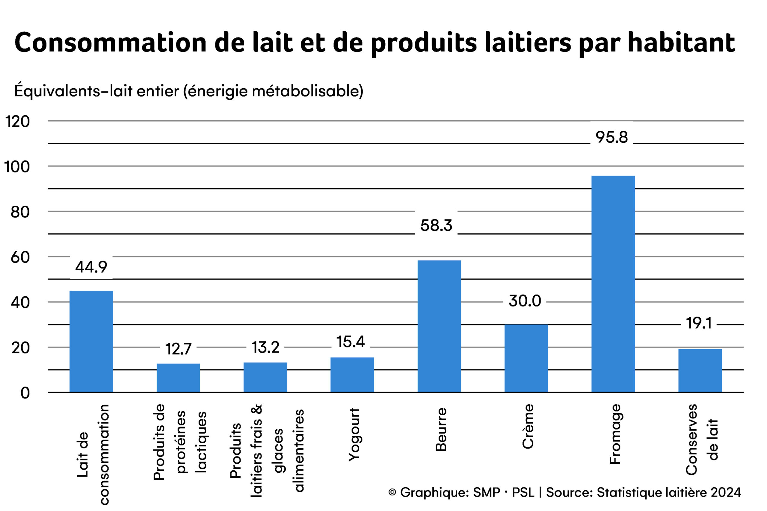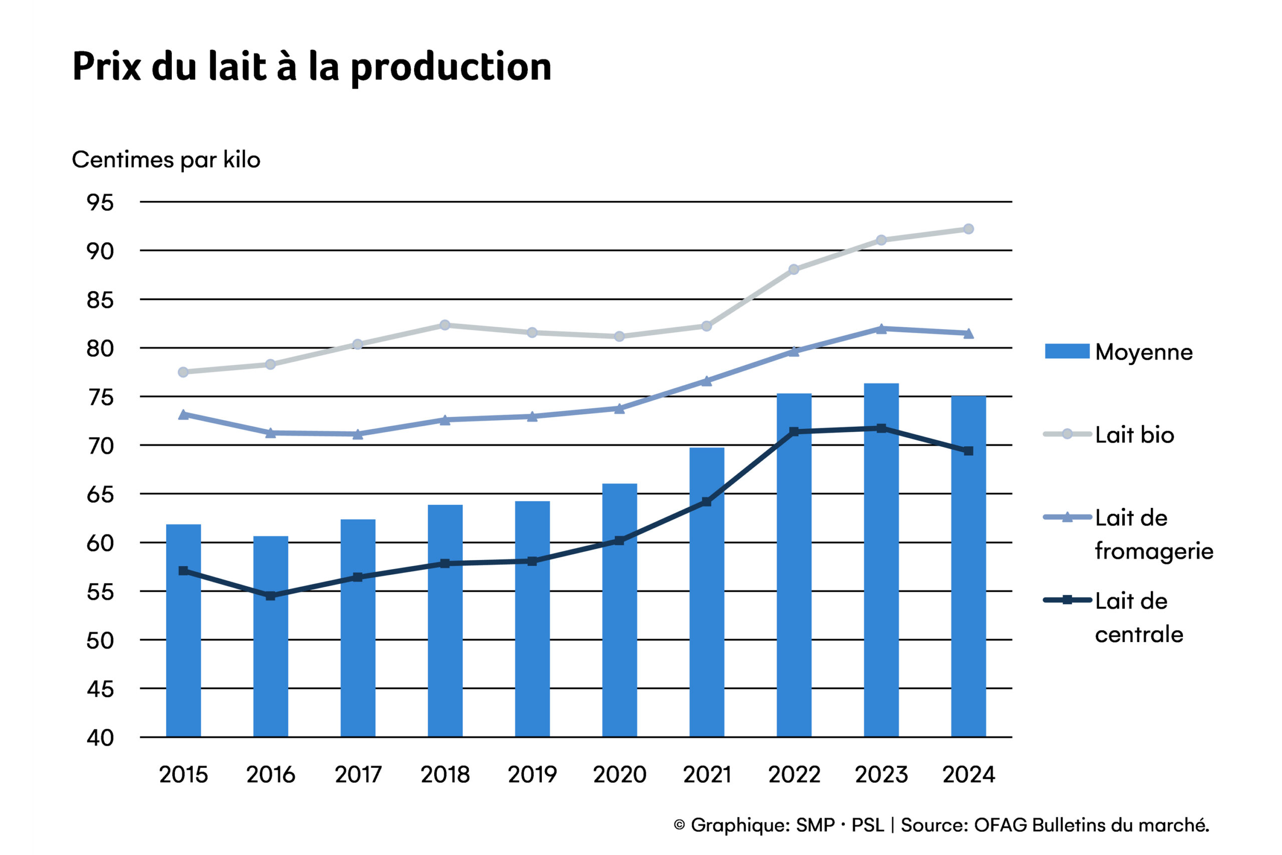 Les graphiques et illustrations suivants offrent une vue d'ensemble concrète de la situation actuelle et de l'évolution de la production, de la transformation et de la consommation de lait en Suisse.