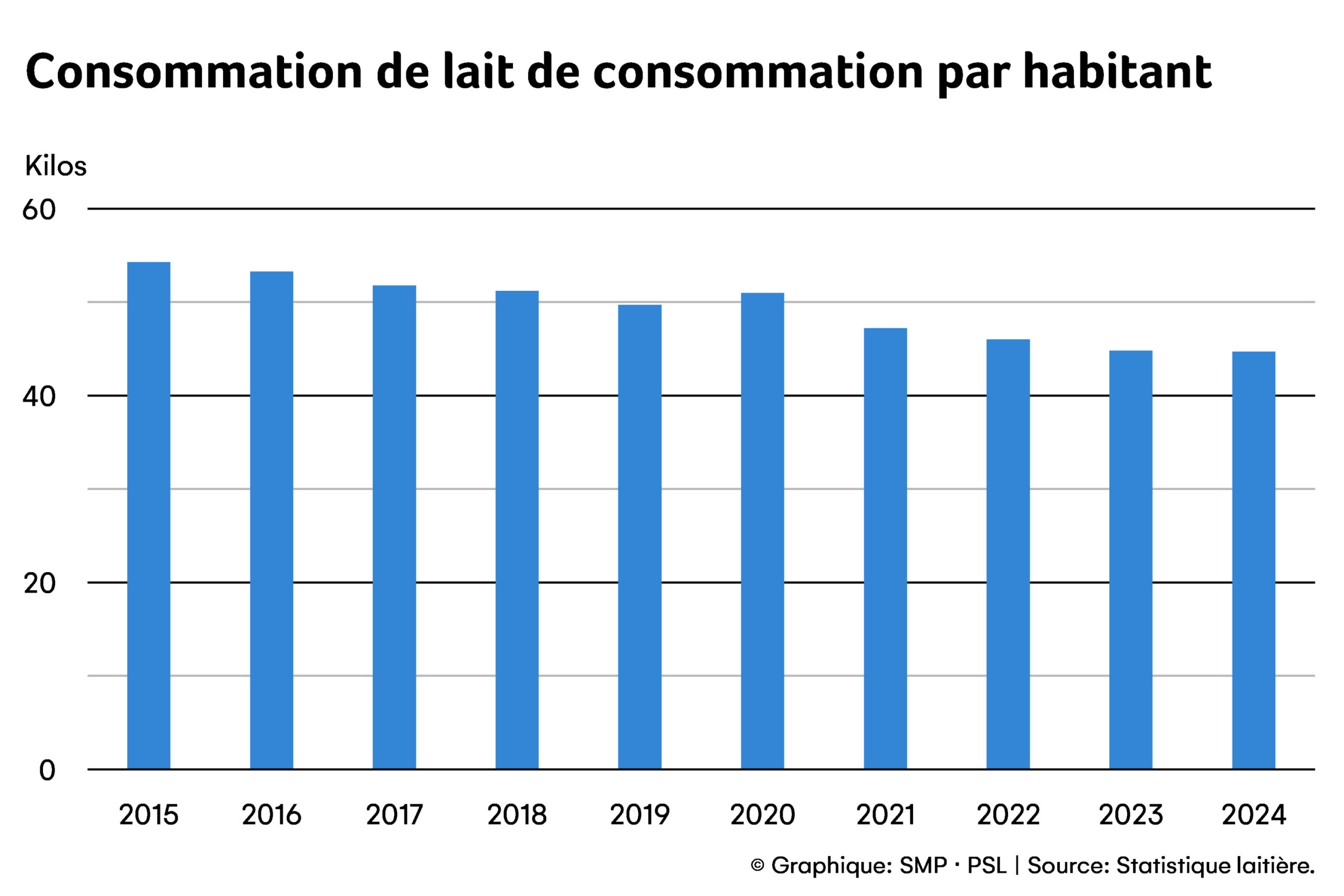 Le marché du lait a connu de grands changements ces dernières décennies. Les évolutions à long terme se reflètent dans des macrotendances depuis 1950. L'observation des années antérieures peut apporter de la lumière sur une question actuelle. À cet égard, voici des graphiques élaborés avec les chiffres annuels.