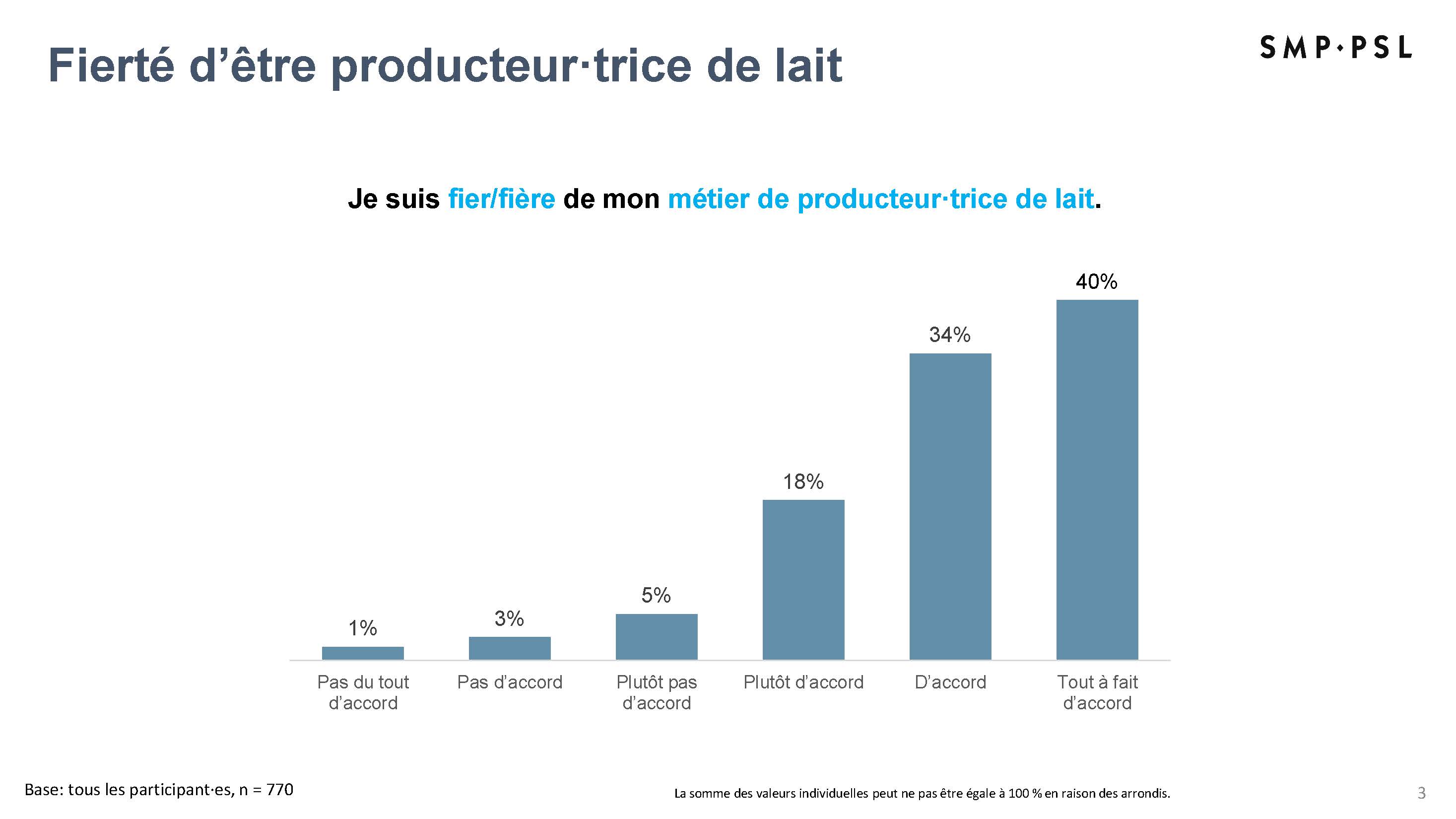 En résumé, la qualité de vie dans la branche laitière dépend fortement de la fierté d'exercer le métier de producteur·trice de lait, de la motivation, de la volonté d'innover et, surtout, du soutien familial.