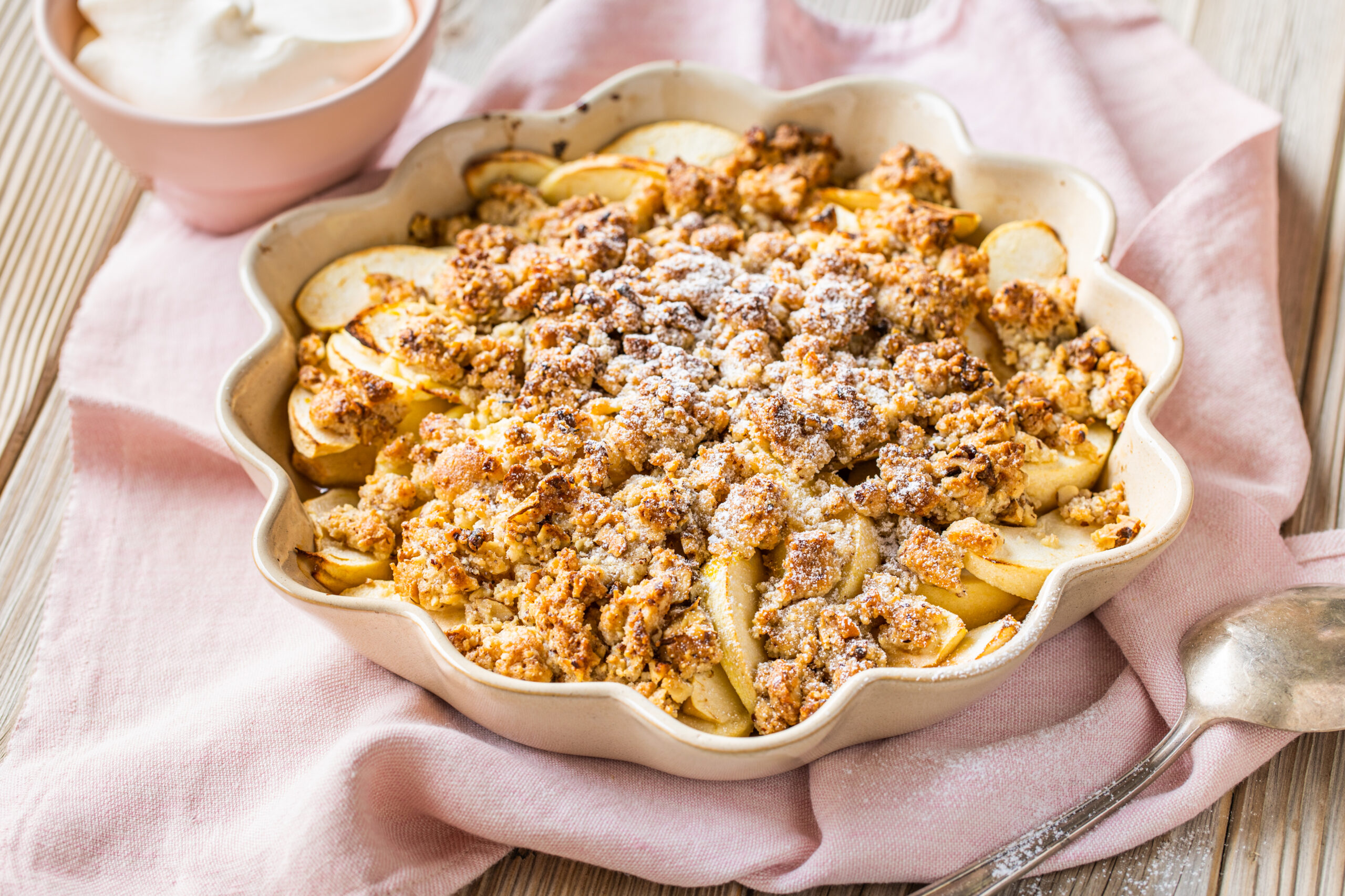 Dans notre sélection, vous trouverez bien sûr la recette de la pâte à crumble. Les classiques comme le crumble aux pommes et le crumble à la rhubarbe sont évidemment de la partie. Mais il y a aussi des recettes pour varier les plaisirs: testez notre apple crumble ou notre crumble aux pruneaux avec une couche croustillante aux flocons d'avoine et aux noix! Et pour accompagner ces savoureux desserts, un monticule de crème fouettée suisse. Miam!
