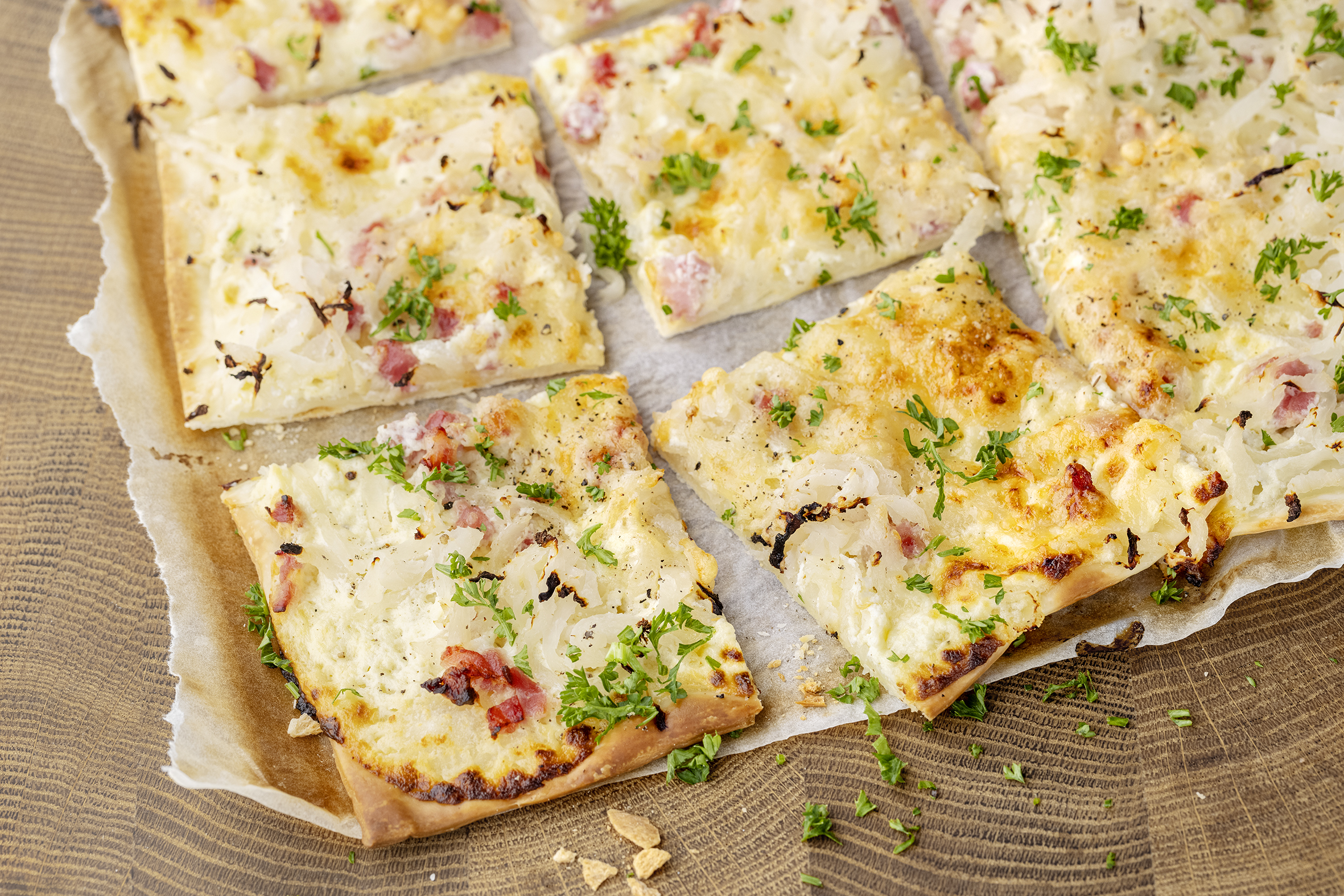 Faire une flammekueche maison est possible et facile avec notre recette de pâte à flammekueche et nos idées de garnitures pour varier de la tarte flambée classique. Tarte alsacienne originale ou avec fromage bleu et poires: à vous de choisir.
