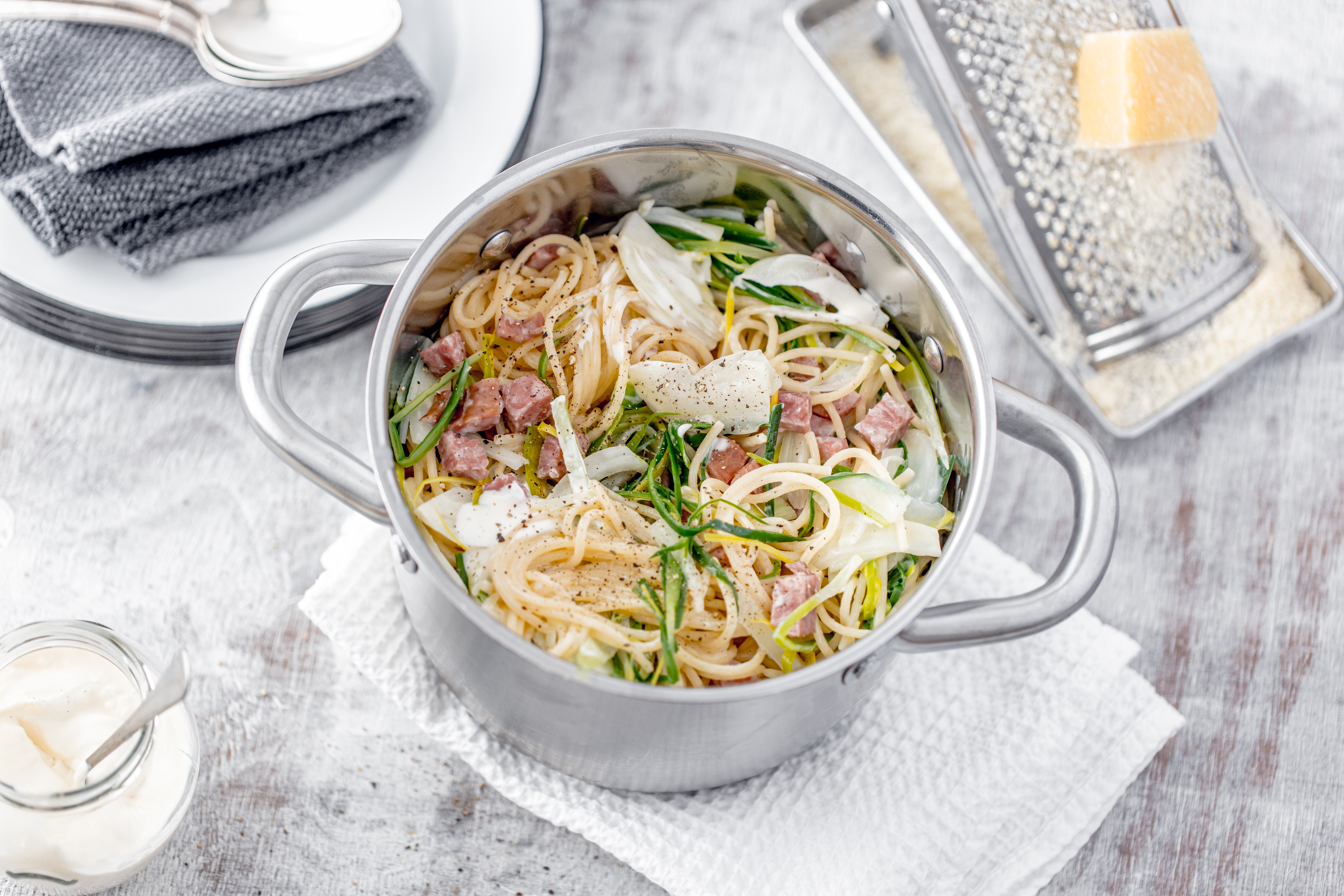 Spaghettis à la courge et au jambon