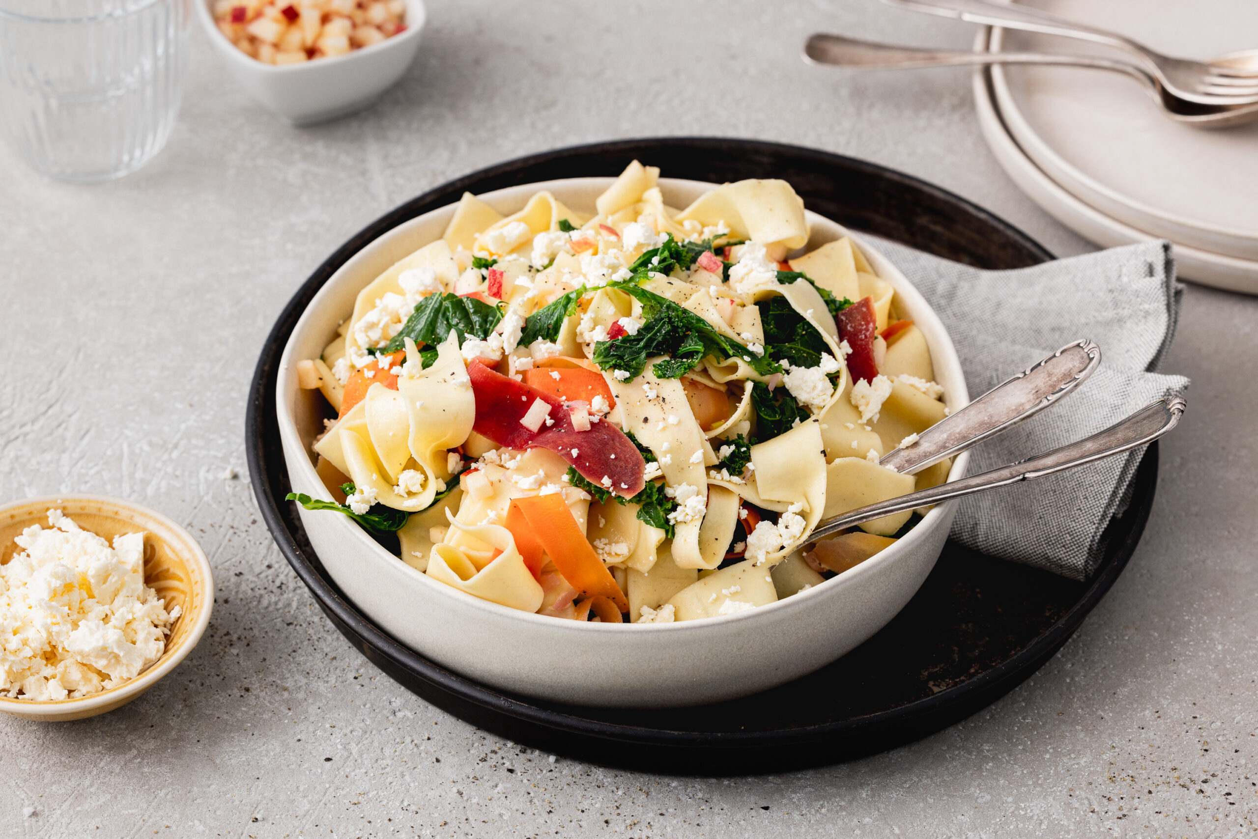 - Cuire le chou kale 3 min dans de l'eau bouillante salée, verser l'eau, égoutter, tamponner avec du papier ménage et saler.