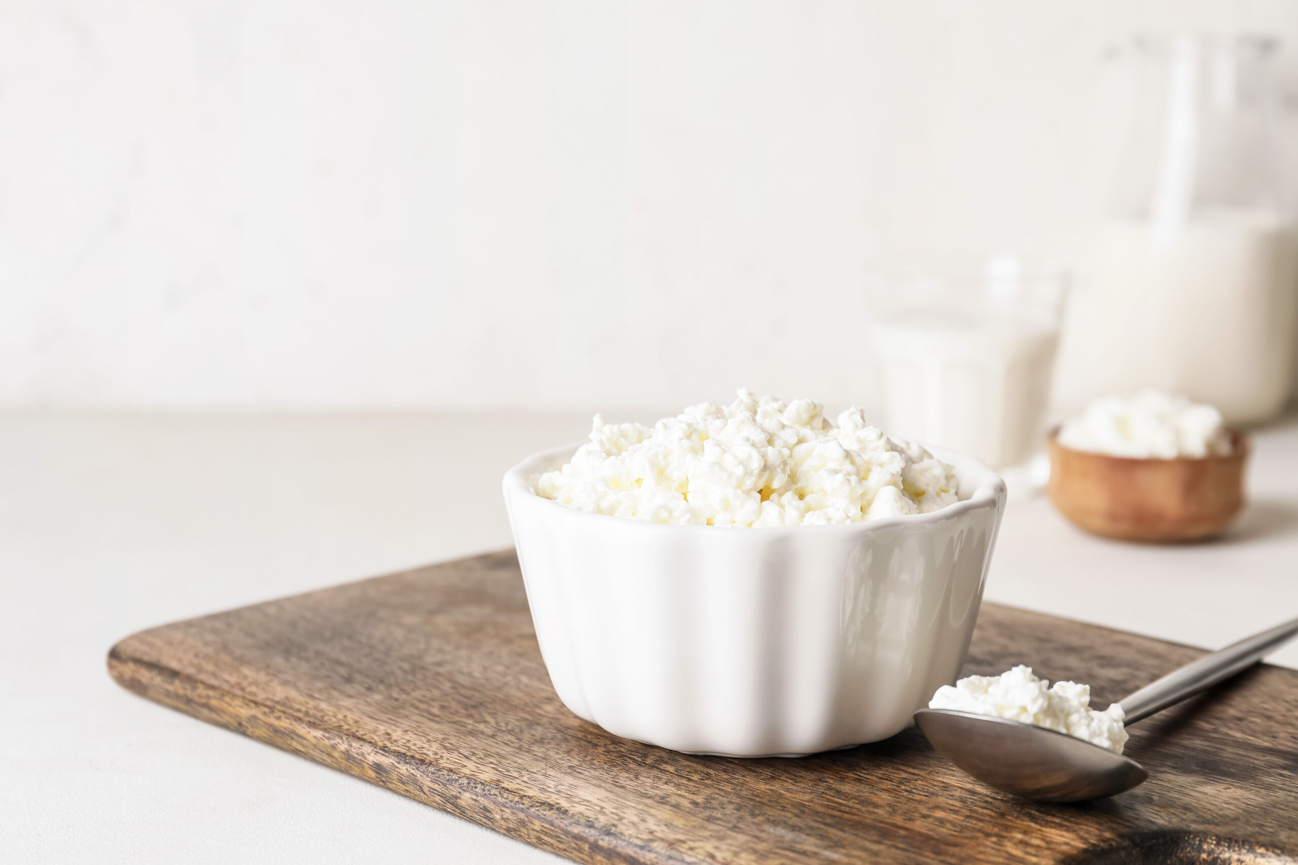 4. Mélanger la polenta avec la moitié du cottage cheese, servir avec la courge, le chou kale, les noisettes et le reste du cottage cheese.