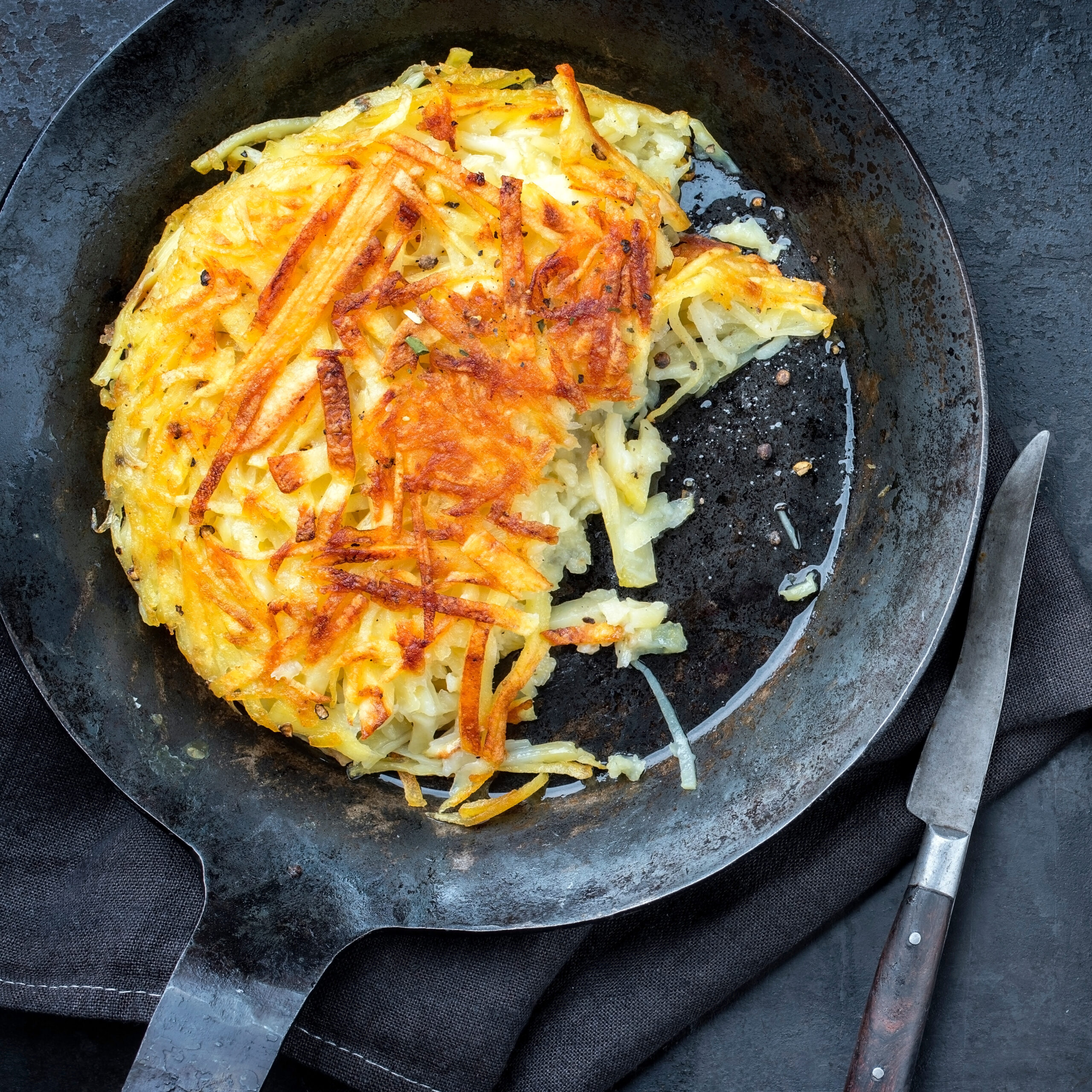 Pour un plat plus consistant, mélanger 100 g de lardons aux röstis.