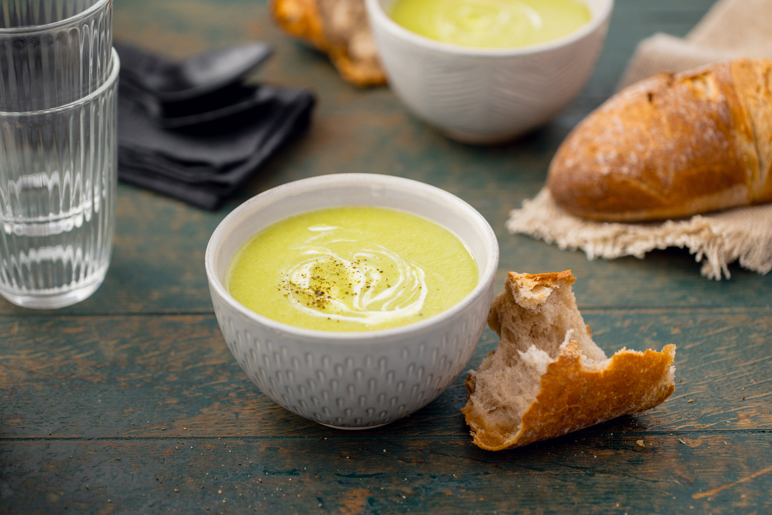 Composants d'une soupe de légumes à la crème (quantités pour 4 personnes)